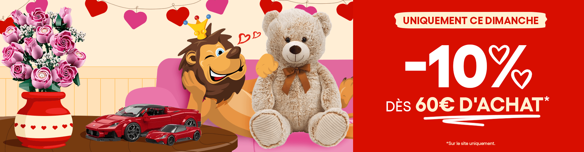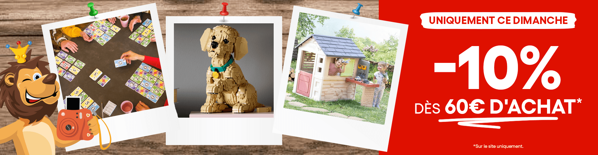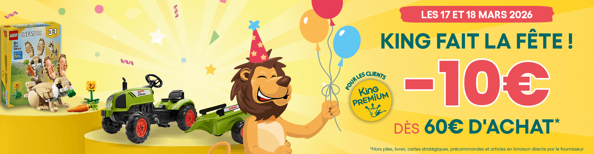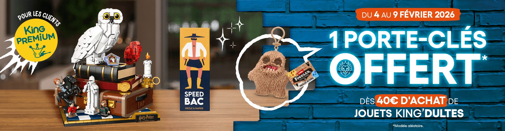 Spécialiste de la distribution de jeux et jouets depuis plus de 30 ans, King jouet vous propose plus de 20 000 références de jouets. Jeux de construction , jeux de société , poupées, peluches , véhicules, circuits ou jouets radiocommandés vous trouverez forcément le jouet qui lui fera plaisir. Plus de 240 magasins en France , ainsi qu'en Suisse , vous attendent pour trouver le cadeau de ses rêves ou bien recevez-le chez vous en passant commande sur www.king-jouet.com