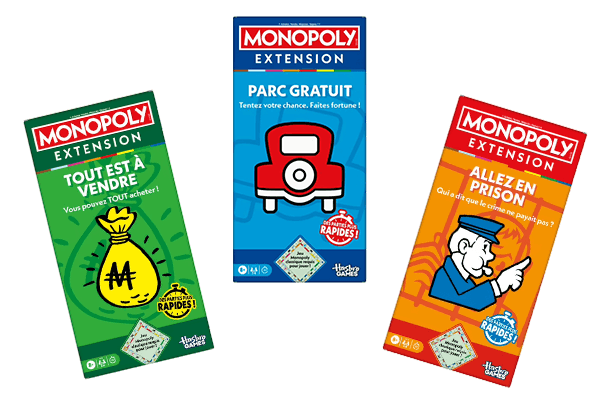 Monopoly se réinvente avec une gamme d’extensions inédites pour enrichir vos parties de jeu de société. Pensées pour les fans du célèbre Monopoly, ces extensions de jeu apportent de nouvelles règles, de nouveaux objectifs et encore plus de rebondissements stratégiques. Conçues pour s’ajouter au jeu de plateau Monopoly classique, elles permettent de renouveler vos parties sans changer les bases du jeu. Avec Allez en Prison, Parc Gratuit ou Tout est à vendre, chaque extension Monopoly transforme la partie et renouvelle l’expérience. Ces jeux de société complémentaires sont parfaits pour dynamiser vos soirées jeux, créer la surprise et prolonger le plaisir du jeu de plateau en famille ou entre amis. Extension Monopoly, c’est le choix idéal pour varier les défis tout en gardant l’esprit du Monopoly classique.