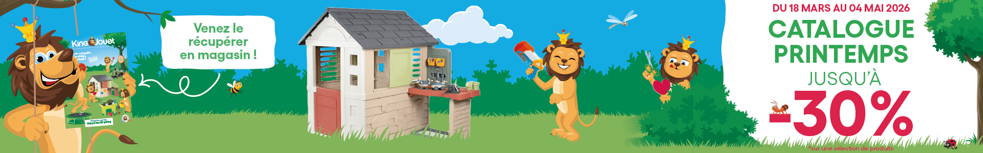 Faites le plein de bons plans parmi nos marques plein air : Smoby, Sun & Sport, Trigano, Falquet, Injusa… Profitez aussi nos offres sur les jouets préférés des enfants : Barbie, Play-Doh, Hot Wheels, Pat’Patrouille, jeux de société Hasbro Games ou encore l’incontournable UNO : de quoi les occuper loin des écrans ! Découvrez nos nouveautés et nos exclusivités LEGO et Playmobil ; Retrouvez également notre gamme King’dultes, une sélection spéciale grands enfants dédiée aux ados et adultes : sets de construction plus complexes (LEGO, Mattel Brick Shop...), figurines et objets de collection et autres loisirs créatifs destinés aux plus grands. Chez King Jouet, quel que soit votre âge, il y a toujours un jouet fait pour vous !