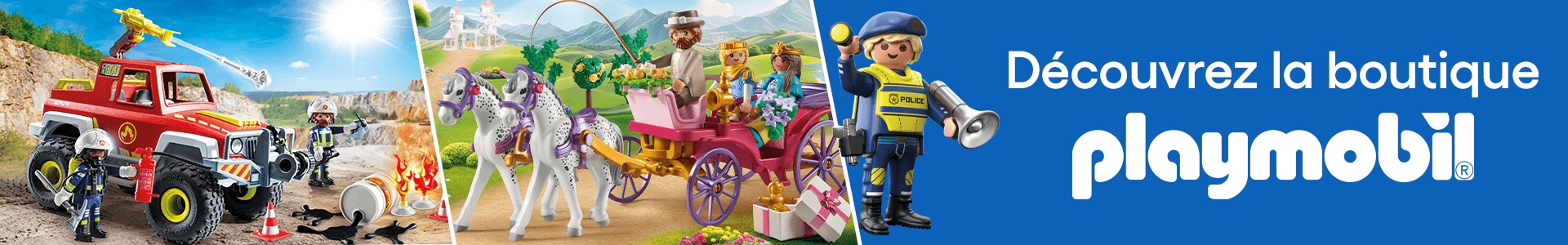 En avant les histoires, retrouvez tout l'univers Playmobil ! Retrouvez des dizaines de coffrets pour inventer de nouvelles histoires chaque jour : pirates, princesses, pompiers, ferme et bien d'autres...