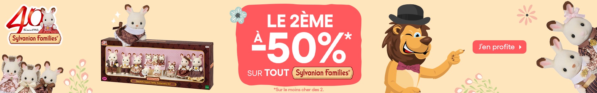 Chez King Jouet nous vous proposons une large de gamme de jouets Sylvanian Families pour permettre à votre enfant de compléter son village. Vous pourrez même trouver des figurines et jouets pas chers grâce à nos promotions sur les Sylvanian.